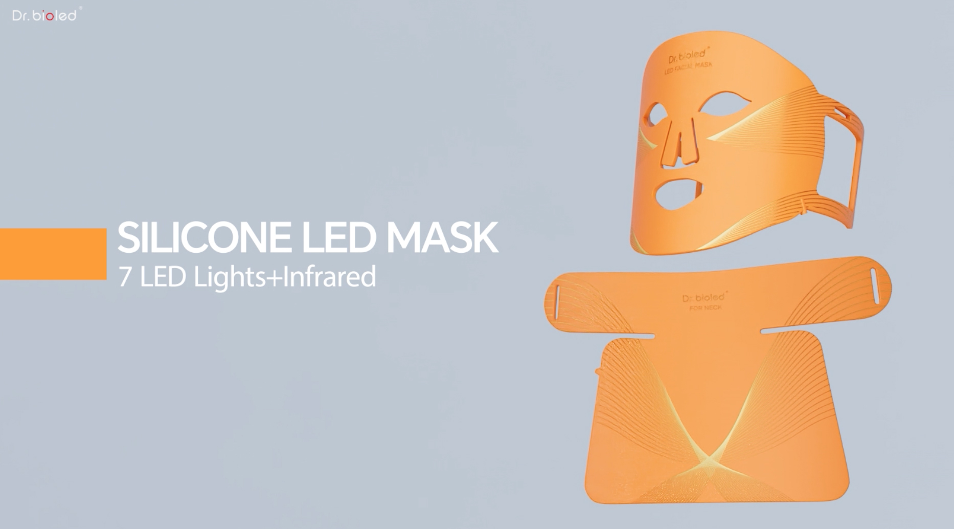 قناع LED من السيليكون للوجه والرقبة بالأشعة تحت الحمراء القريبة و 7 مصابيح LED للعلاج