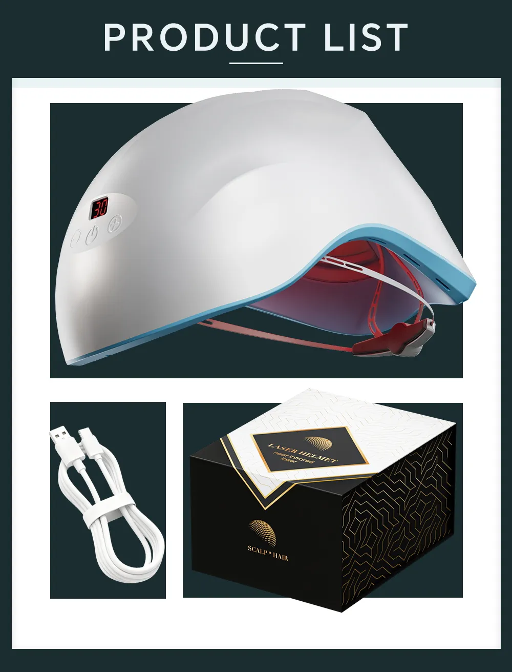 تشير الأبحاث إلى أن تطبيق ليزر 655 نانومتر الناعم وضوء الأشعة تحت الحمراء القريب الأحمر 850 نانومتر باستمرار على فروة الرأس يوفر فوائد مثل: تعزيز نمو الشعر + تحسين تدفق الدم في فروة الرأس + زيادة درجة حرارة الأنسجة، وتوفير الحماية العصبية وتجديد الخلايا + تحسين الوظيفة المعرفية.